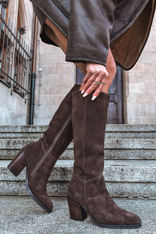 Zazoo Semišové Kozačky Na Podpatku Zip Čokoládové Lissara