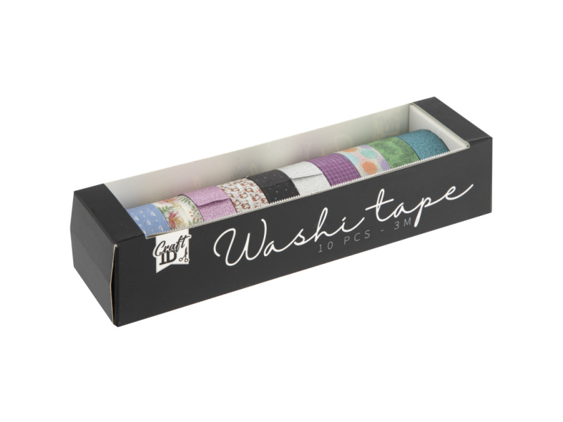 Dekorační lepicí páska - Washi pásky, 1,5cm x 3m, 10ks - CR3003/GE