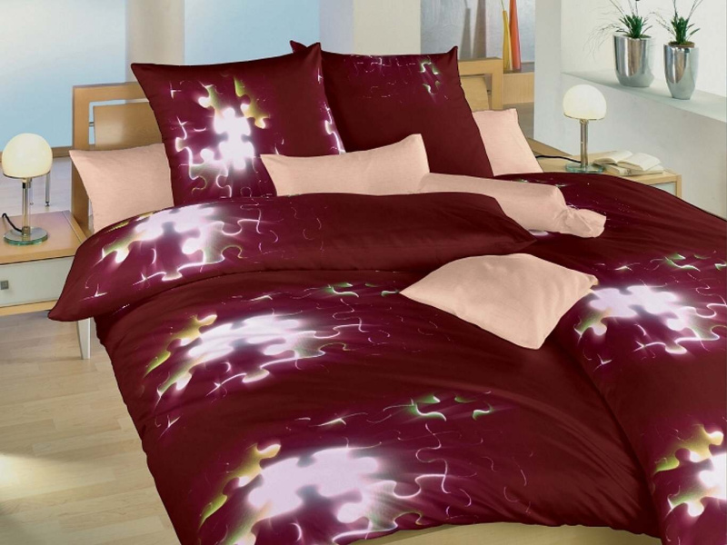DADKA VRACOV Dadka Povlečení satén Puzzle vínové 140x200, 70x90 cm