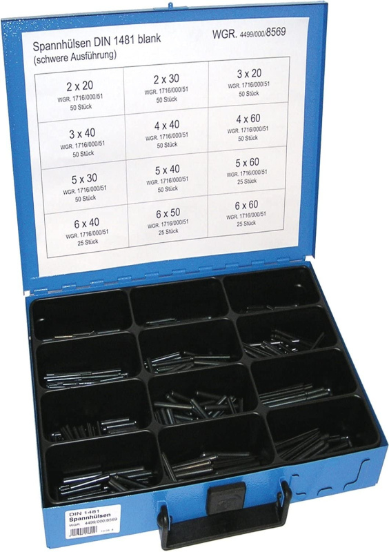 Dresselhaus Pružné kolíky s drážkou DIN 1481, různé rozměry, sada 500 ks v kufru