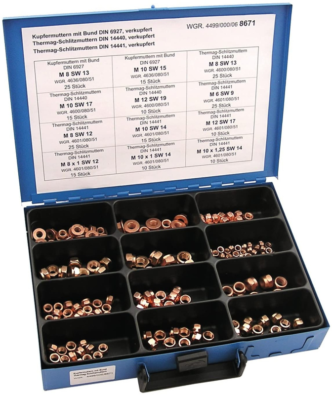 Dresselhaus Těsnicí kroužky měděné, hliníkové a gumové DIN 7603, sada 425 ks v kufru