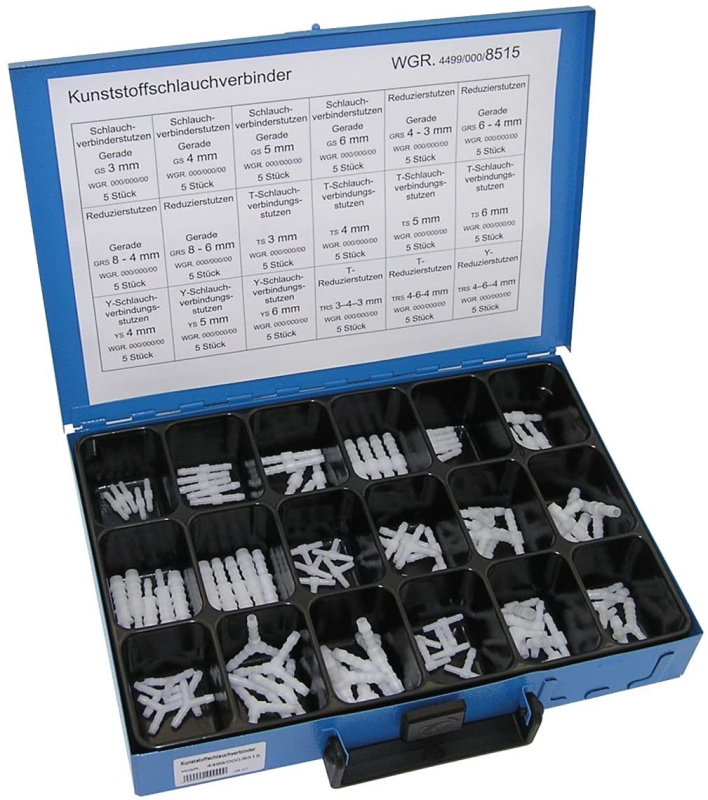 Dresselhaus Hadicové spojky plastové, různé průměry a tvary, sada 90 ks v kufru