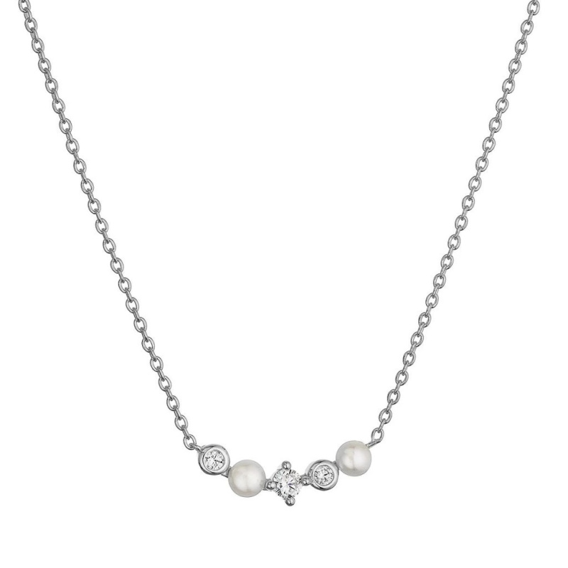Evolution Group - Pavona Elegantní stříbrný náhrdelník se zirkony a perlami 22057.1