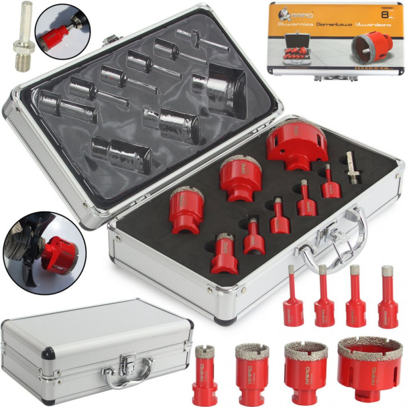 Korunkový vrták diamantový, sada, 6, 8, 10, 12, 20, 35, 45, 68 mm MAR-POL