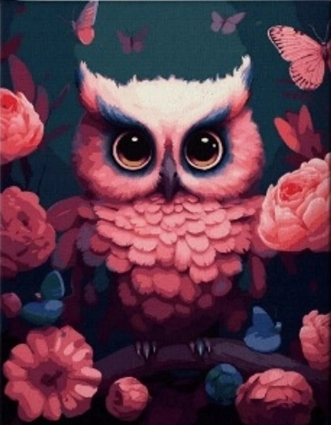 Diamantové malování Růžová sova 30 × 40 cm