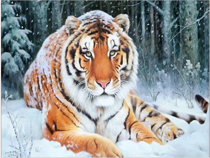 Diamantové malování Tygr ležící ve sněhu 30 × 40 cm