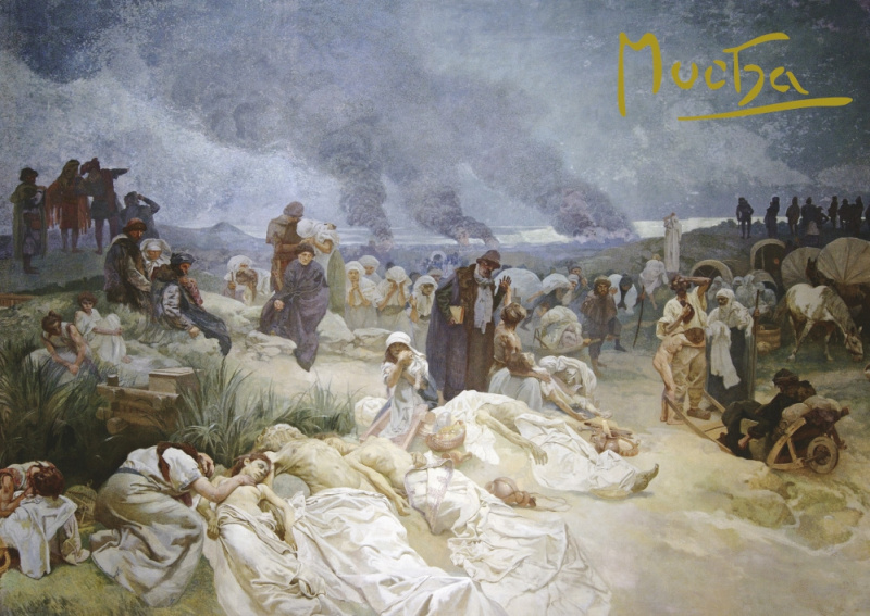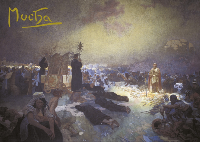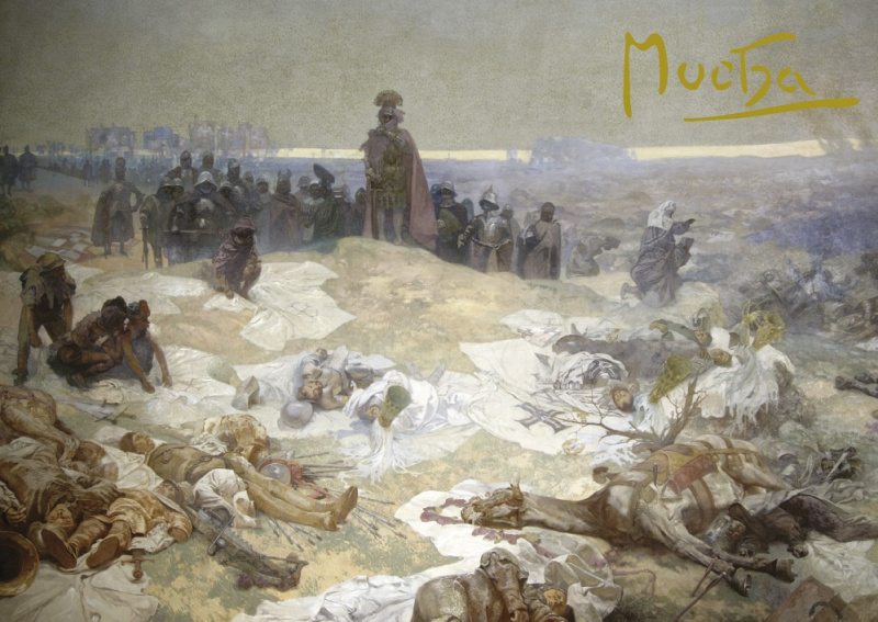 Pohled Alfons Mucha Slovanská epopej – Po bitvě na Vítkově, krátký
