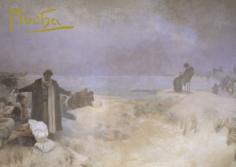 Pohled Alfons Mucha Slovanská epopej – Zavedení slovanské liturgie, krátký