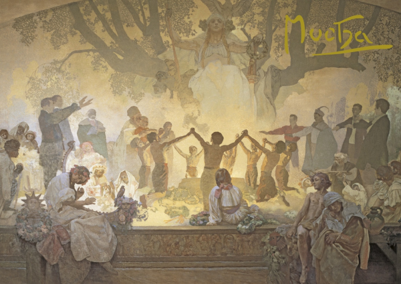 Pohled Alfons Mucha Slovanská epopej – Slavnost Svantovítova, krátký