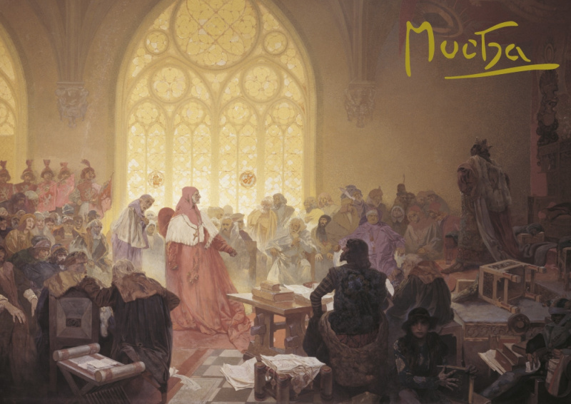 Pohled Alfons Mucha Slovanská epopej – Jiří z Poděbrad, krátký