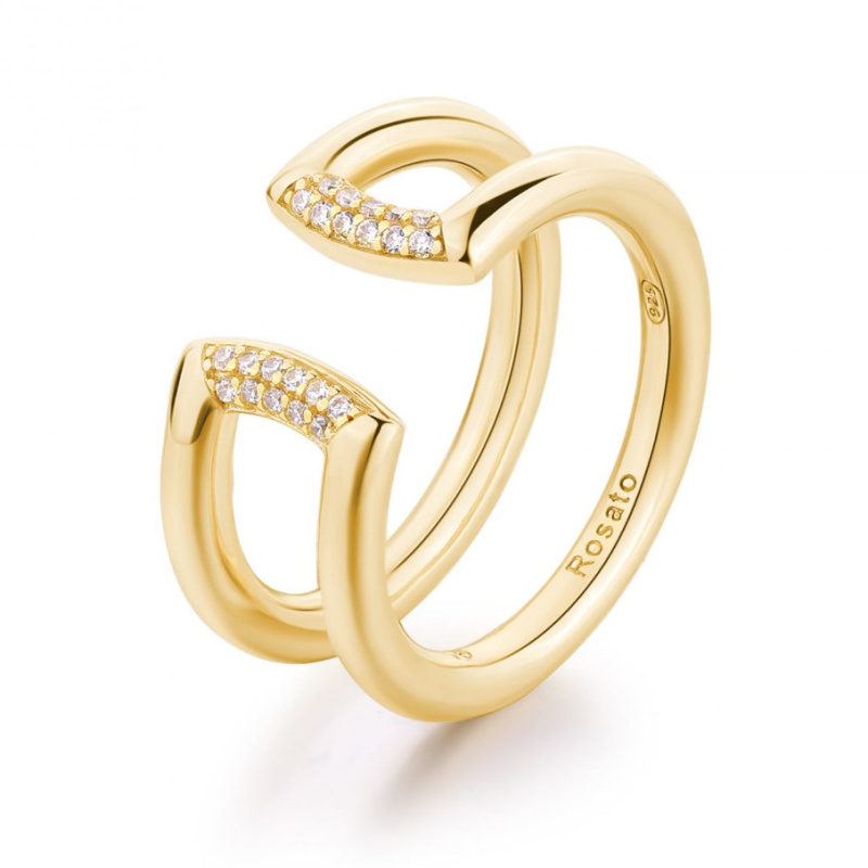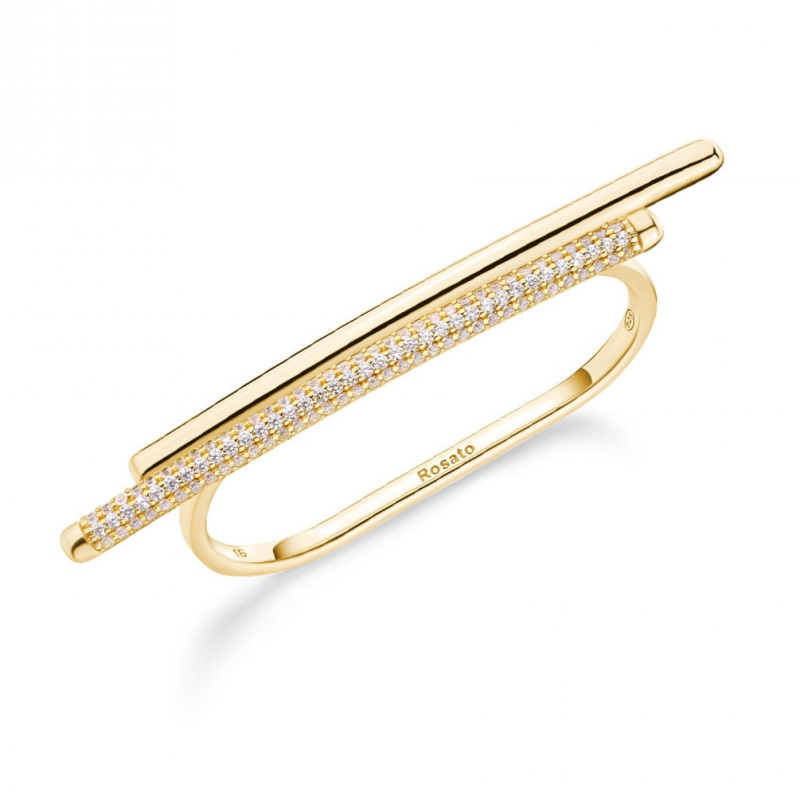 Rosato Moderní dvojitý pozlacený prsten se zirkony Bianca RZBI87