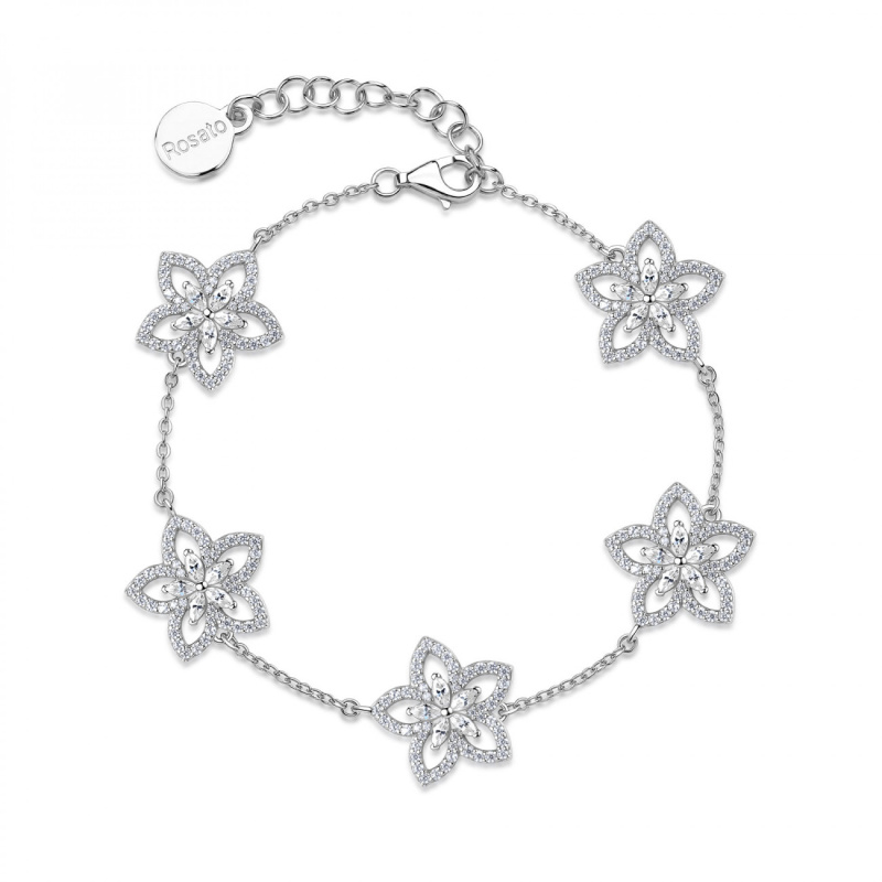 Rosato Stříbrný náramek s čirými zirkony Květiny Gaia RZGA90
