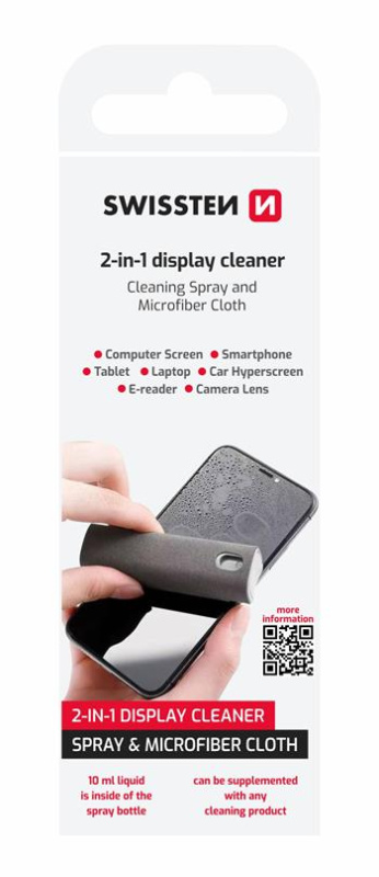 Swissten 2v1: Kapesní čistič displejů (sprej + hadřík)