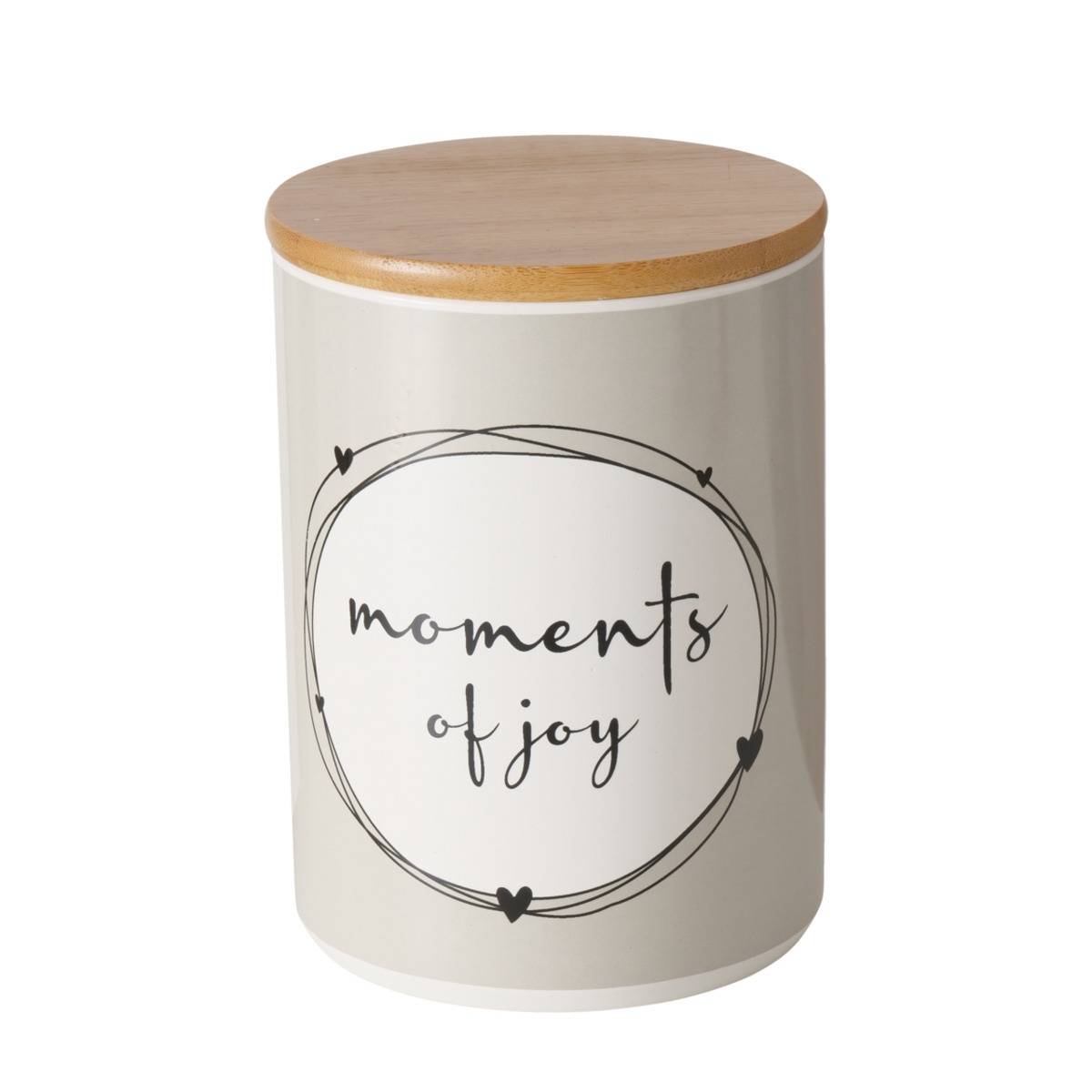 Hlídací pes pro | Boltze Home Keramická dóza na potraviny Enjoy se vzduchotěsným bambusovým víkem, moments of joy béžová
